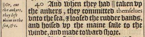 40 And when they had || taken vp the ankers, they committed themselues vnto the sea, & loosed the rudder bands, and hoised vp the maine saile to the winde, and made toward shore. [|| Or, cut the ankers, they left them in the sea, &c.]