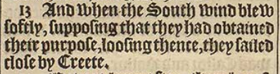13 And when the South wind blew softly, supposing that they had obtained their purpose, loosing thence, they sailed close by Creete.