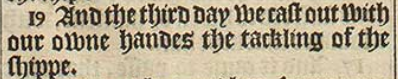 19 And the third day we cast out with our owne handes the tackling of the shippe.