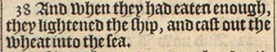 38 And when they had eaten enough, they lightened the ship, and cast out the wheat into the sea.