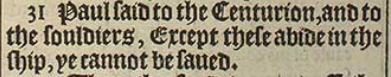 31 Paul said to the Centurion, and to the souldiers, Except these abide in the ship, ye cannot be saued.