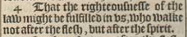 4 That the righteousnesse of the law might be fulfilled in vs, who walke not after the flesh, but after the spirit.