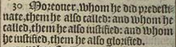 30 Moreouer, whom he did predestinate, them he also called: and whom he called, them he also iustified: and whom he iustified, them he also glorified.