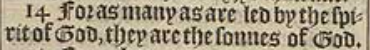 14 For as many as are led by the spirit of God, they are the sonnes of God.