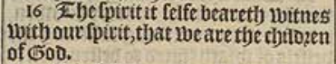 16 The spirit it selfe beareth witnes with our spirit, that we are the children of God.