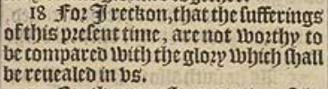 18 For I reckon, that the sufferings of this present time, are not worthy to be compared with the glory which shall be reuealed in vs.