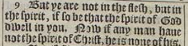 9 But ye are not in the flesh, but in the spirit, if so be that the spirit of God dwell in you. Now if any man haue not the spirit of Christ, he is none of his.