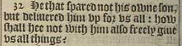 32 He that spared not his owne son, but deliuered him vp for vs all: how shall hee not with him also freely giue vs all things?