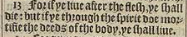 13 For if ye liue after the flesh, ye shall die: but if ye through the spirit doe mortifie the deeds of the body, ye shall liue.