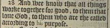 28 And wee know that all things worke together for good, to them that loue God, to them who are the called according to his purpose.