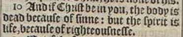 10 And if Christ be in you, the body is dead because of sinne: but the spirit is life, because of righteousnesse.