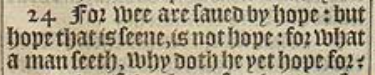 24 For wee are saued by hope: but hope that is seene, is not hope: for what a man seeth, why doth he yet hope for?