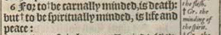 6 For to +be carnally minded, is death: but +to be spiritually minded, is life and peace: [+Gr. the minding of the flesh. ,+Gr. the minding of the spirit.]