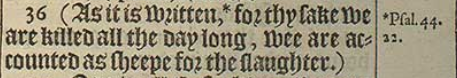 36 (As it is written, *for thy sake we are killed all the day long, wee are accounted as sheepe for the slaughter.)[*Psal.44. 22.]