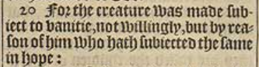 20 For the creature was made subiect to vanitie, not willingly, but by reason of him who hath subiected the same in hope: