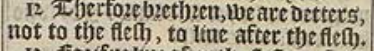 12 Therfore brethren, we are detters, not to the flesh, to liue after the flesh.
