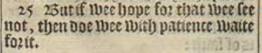 25 But if wee hope for that wee see not, then doe wee with patience waite for it.