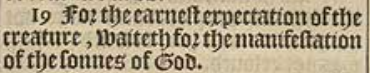 19 For the earnest expectation of the creature, waiteth for the manifestation of the sonnes of God.