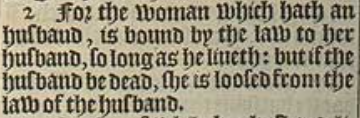 2 For the woman which hath an husbaud, is bound by the law to her husband, so long as he liueth: but if the husband be dead, she is loosed from the law of the husband.