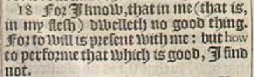 18 For I know, that in me (that is, in my flesh) dwelleth no good thing. For to will is present with me: but how to performe that which is good, I find not.