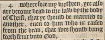 4 Wherefore my brethren, yee also are become dead to the law by the body of Christ, that ye should be married to another, euen to him who is raised from the dead, that wee should bring forth fruit vnto God,
