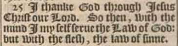 25 I thanke God through Iesus Christ our Lord. So then, with the mind I my self serue the Law of God: but with the flesh, the law of sinne.