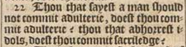 22 Thou that sayest a man should not commit adulterie, doest thou commit adulterie? thou that abhorrest idols, doest thou commit sacriledge?