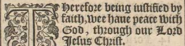 1 Therefore being iustified by faith, wee haue peace with God, through our Lord Iesus Christ.