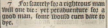7 For scarcely for a righteous man will one die: yet peraduenture for a good man, some would euen dare to dye.
