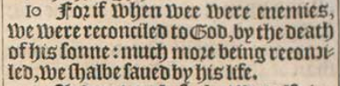 10 For if when wee were enemies, we were reconciled to God, by the death of his sonne: much more being reconciled, we shalbe saued by his life.