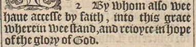 2 By whom also wee haue accesse by faith, into this grace wherein wee stand, and reioyce in hope of the glory of God.