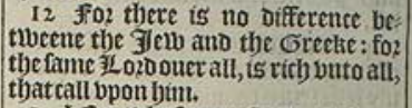 12 For there is no difference betweene the Iew and the Greeke: for the same Lord ouer all, is rich vnto all, that call vpon him.