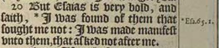 20 But Esaias is very bold, and saith, *I was found of them that sought me not: I was made manifest vnto them, that asked not after me.[*Esa.65.1.]