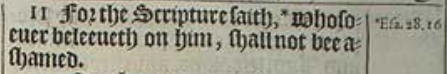 11 For the Scripture saith, *Whosoeuer beleeueth on him, shall not bee ashamed.[*Esa.28.16]