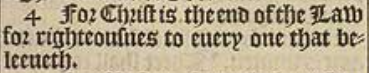 4 For Christ is the end of the Law for righteousnes to euery one that beleeueth.