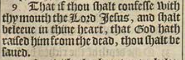 9 That if thou shalt confesse with thy mouth the Lord Iesus, and shalt beleeue in thine heart, that God hath raised him from the dead, thou shalt be saued.