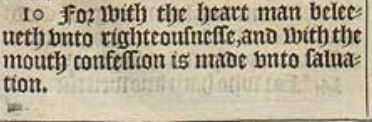 10 For with the heart man beleeueth vnto righteousnesse, and with the mouth confession is made vnto saluation.