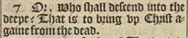 7 Or, Who shall descend into the deepe? That is to bring vp Christ againe from the dead.