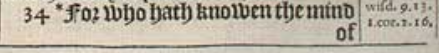 34 *For who hath knowen the mind of the Lord, or who hath bene his counseller?[*Esa.40.13 wisd.9.13. 1.cor.2.16.]