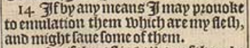 14 If by any means I may prouoke to emulation them which are my flesh, and might saue some of them.