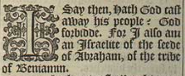 1 I say then, Hath God cast away his people? God forbidde. For I also am an Israelite of the seede of Abraham, of the tribe of Beniamin.
