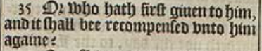 35 Or who hath first giuen to him, and it shall bee recompensed vnto him againe?