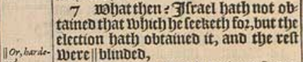 7 What then? Israel hath not obtained that which he seeketh for, but the election hath obtained it, and the rest were || blinded,[|| Or, hardened.]