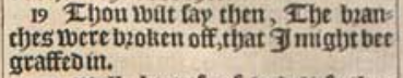 19 Thou wilt say then, The branches were broken off, that I might bee graffed in.