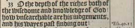 33 O the depth of the riches both of the wisedome and knowledge of God! how vnsearchable are his iudgements, and his wayes past finding out!