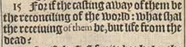 15 For if the casting away of them be the reconciling of the world: what shal the receiuing of them be, but life from the dead?