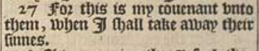 27 For this is my couenant vnto them, when I shall take away their sinnes.