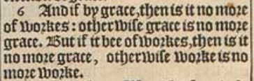 6 And if by grace, then is it no more of workes: otherwise grace is no more grace. But if it bee of workes, then is it no more grace, otherwise worke is no more worke.