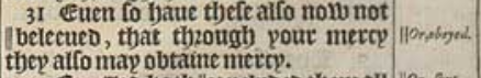 31 Euen so haue these also now not ||beleeued, that through your mercy they also may obtaine mercy.[|| Or, obeyed.]