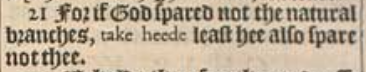21 For if God spared not the natural branches, take heede least hee also spare not thee.